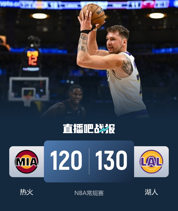 湖人(5-2):东契奇29分11板10助3断、里夫斯26分4板11助、拉拉维亚25分8板3助4断、八村塁15分6板2助、海斯15分5板1助、斯玛特11分3板4助2断、范德比尔特4分4板、克内克特3分、布朗尼2分2助3断