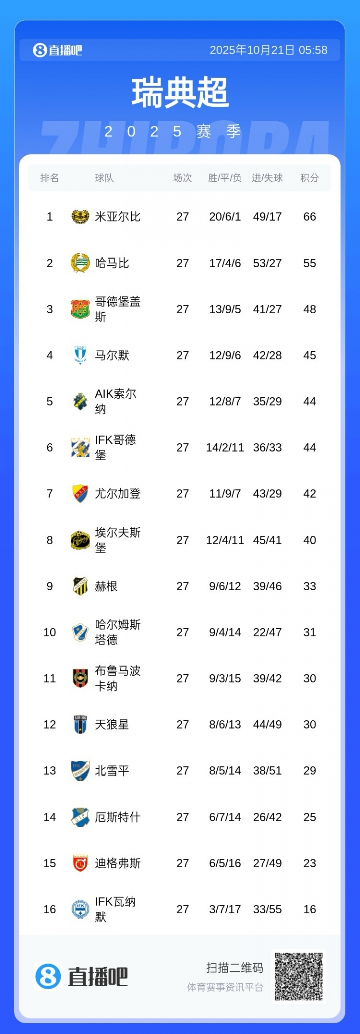 如今,这匹黑马米亚尔比将马尔默、AIK索尔纳、IFK哥德堡等瑞典传统豪强甩在身后,以冠军头衔为这段成功故事书写了暂定的巅峰。