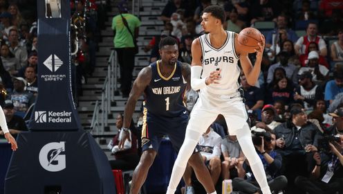 10月25日讯 NBA常规赛,鹈鹕主场迎战马刺。揭幕战马刺大胜独行侠,鹈鹕不敌灰熊。比赛开始,锡安和文班亚马各自暴扣开局,随后文班亚马连...